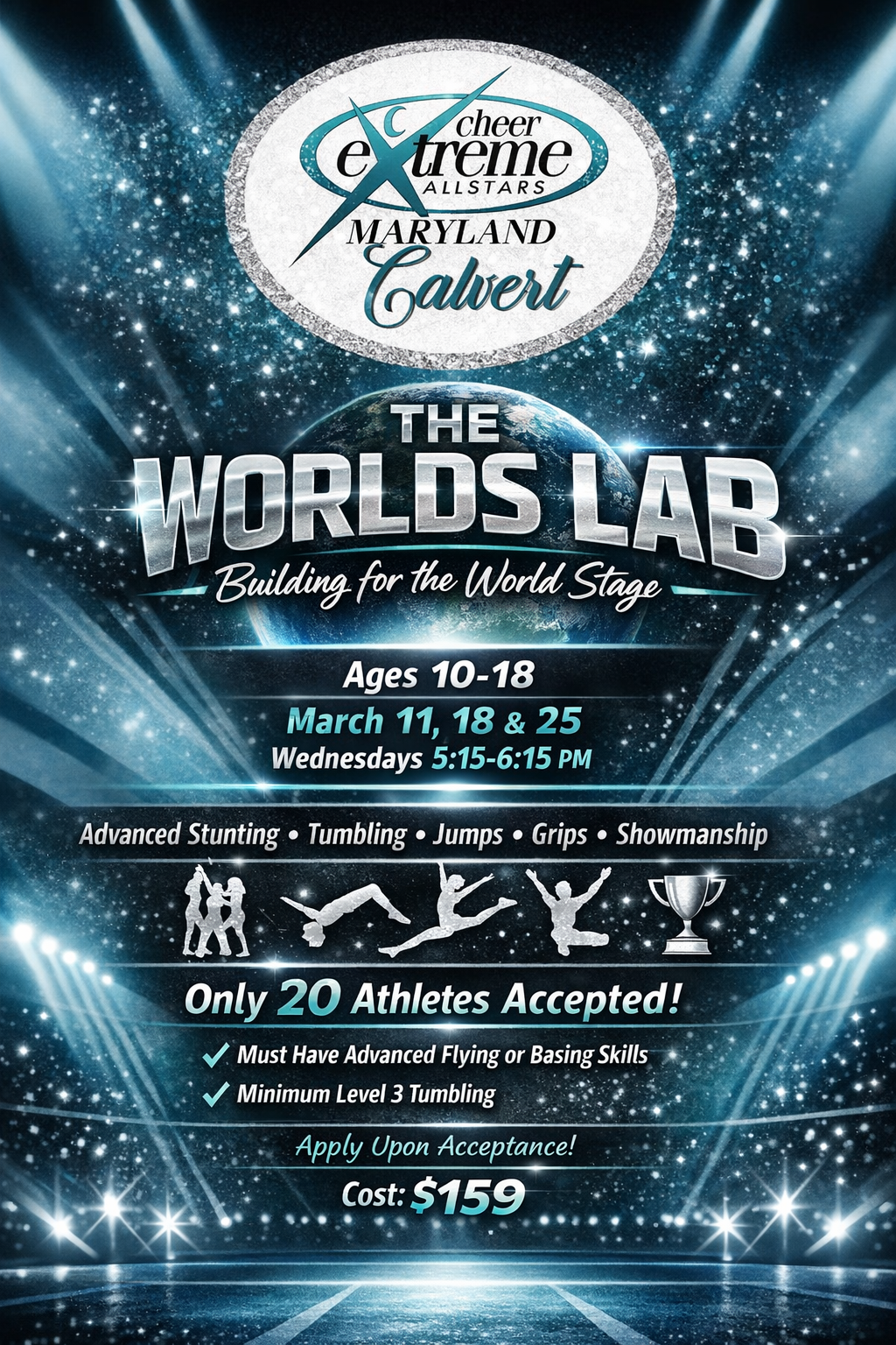 November Tumbling sessions begin! Level 1 - Wednesdays 6-6:50 p.m. Level 2/3: Tuesdays 6-6:50 p.m. Back Walkovers: Thursdays 5:30-6:20 p.m. Limited Spots Available! $149 per athlete for the November session. Sign up by 10/26 and save $10!